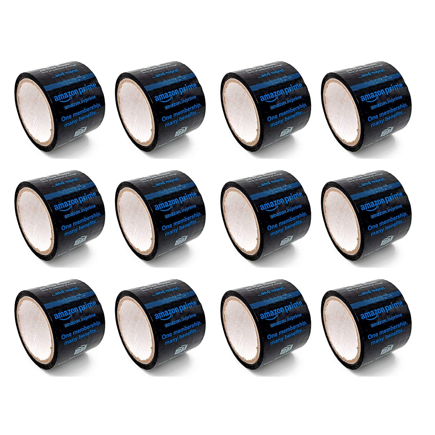 Value Pack - Packaging tape (3 inches Wide x 55 Meter long) along with Amazon prime watermark on all over the tape.